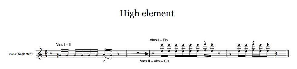 Added trumpet in the fast repetition gives more volume to the middle range element.